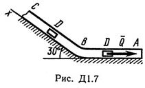Груз D массой m, получив в точке A начальную скорость v0 движется в изогнутой трубе AВС, расположенной в вертикальной плоскости; участки трубы или оба наклонные, или один горизонтальный, а другой наклонный (рис. Д1.0 — Д1.9, табл. Д1).