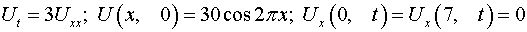 Решение задачи 2.30 (задача 2. Решить смешанную задачу (стр. 213). Вариант 30) из решебника к сборнику по высшей математике раздела XI: Уравнения Математической Физики (УМФ).